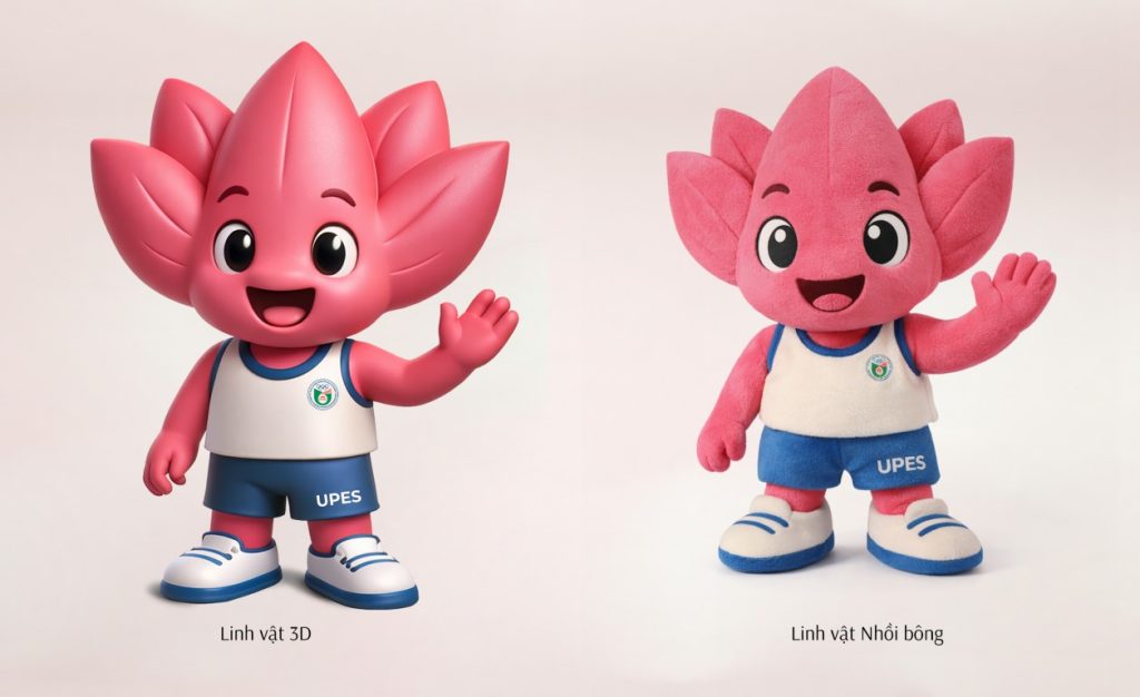 Ý tưởng thiết kế linh vật: Lotus Spirit and A blazing Torch– Tinh thần hoa sen và ngọn đuốc đang rực cháy: Biểu tượng của ý chí, nhiệt huyết, sự thuần khiết và khát vọng vươn xa.